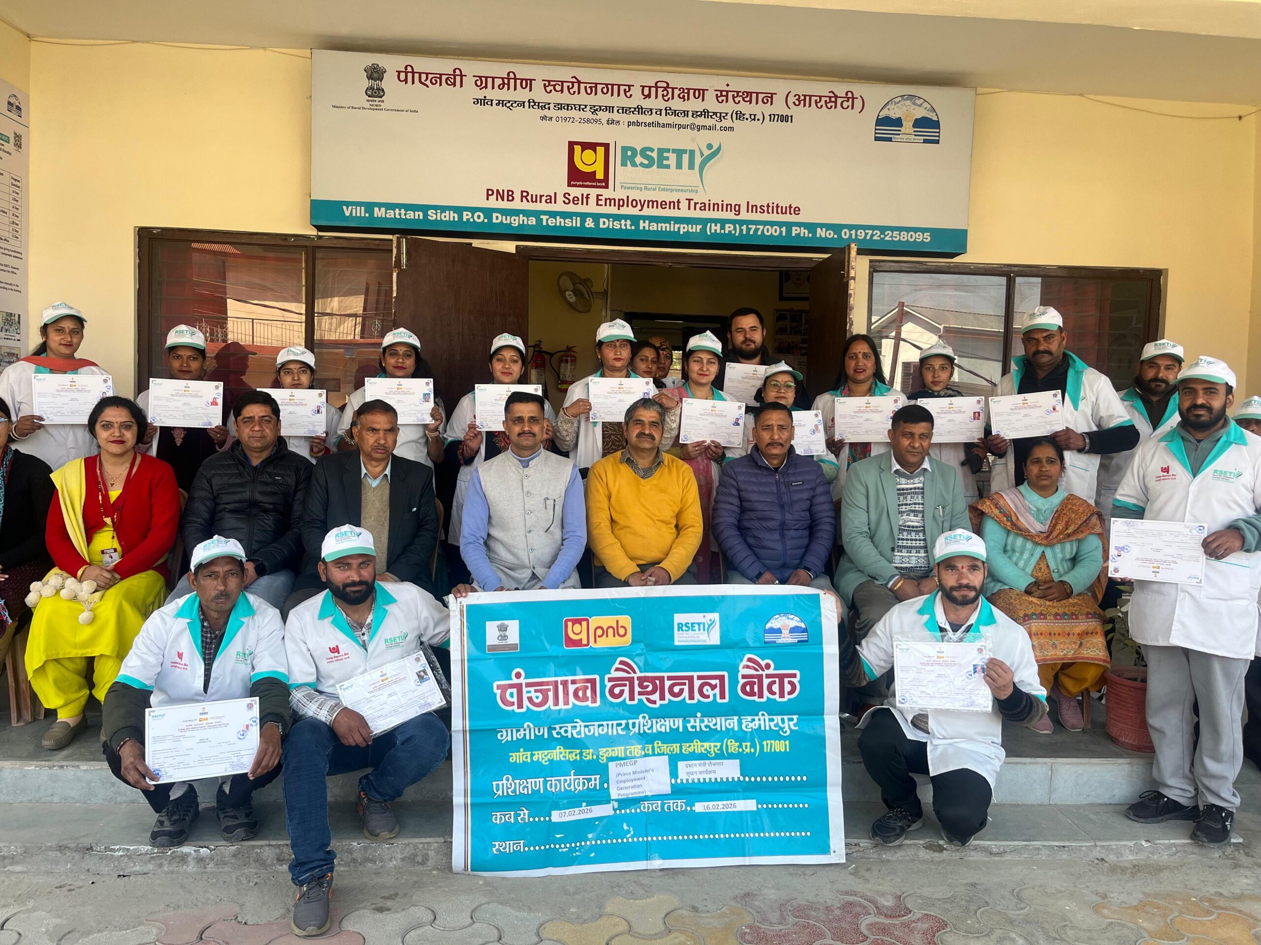 हमीरपुर/विवेकानंद वशिष्ठ:- पंजाब नेशनल बैंक ग्रामीण स्वरोजगार प्रशिक्षण संस्थान (आरसेटी) हमीरपुर में पीएमईजीपी योजना के लाभार्थियों के लिए आयोजित दस दिवसीय प्रशिक्षण शिविर सोमवार को संपन्न हो गया।