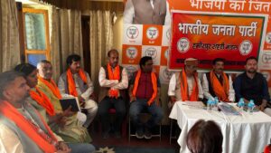 हमीरपुर/विवेकानंद वशिष्ठ :- हमीरपुर विधानसभा हमीरपुर मंडल में भी मंडल अध्यक्ष पाल शर्मा की अध्यक्षता में आज परिचय बैठक का आयोजन किया गया। जिसमें मुख्य रूप से भारतीय जनता पार्टी के प्रदेश संगठन मंत्री सिद्धार्थन,प्रदेश सचिव सुमित शर्मा,प्रदेश महिला मोर्चा अध्यक्षा वंदना योगी, विस्तारक अमित शर्मा,प्रदेश सचिव नरेंद्र अत्री व जिलाध्यक्ष राकेश ठाकुर उपस्थित रहे ।