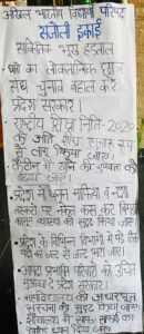 शिमला/विवेकानंद वशिष्ठ :- अखिल भारतीय विद्यार्थी परिषद संजौली इकाई द्वारा प्रदेश स्तरीय मांगो को लेकर परिसर मे 24 घंटे की भूख ह्रड़ताल की गयी।