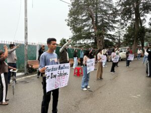 शिमला/विवेकानंद वशिष्ठ :- SFI हिमाचल प्रदेश विश्वविद्यालय इकाई ने छात्र मांगो को लेकर विश्वविद्यालय विश्वविद्यालय में धरना प्रदर्शन किया। इस धरने की भूमिका बांधते हुए कैंपस सचिवालय सदस्य पविंदर ने कहा की आज विश्वविद्यालय को बने हुए लगभग 56 वर्ष हो गए हैं।