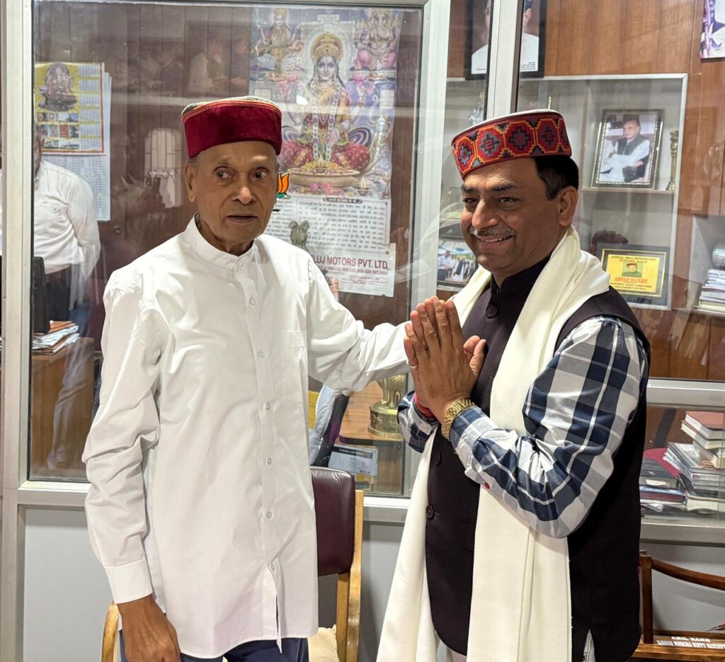 हमीरपुर/विवेकानंद वशिष्ठ :- भाजपा प्रदेश सचिव सुमीत शर्मा ने आज पूर्व मुख्यमंत्री और वरिष्ठ भाजपा नेता प्रो. प्रेम कुमार धूमल से मुलाकात की और पार्टी के भविष्य के प्रयासों के लिए उनका आशीर्वाद लिया।