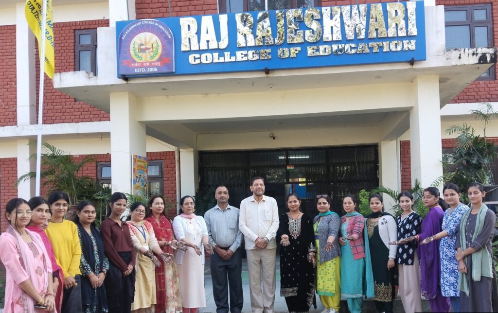 हमीरपुर/विवेकानंद वशिष्ठ :- राज राजेश्वरी शिक्षा महाविद्यालय भोटा, हमीरपुर में करवा चैथ के उपलक्ष्य पर मेहंदी प्रतियोगिता का आयोजन किया गया। प्रतियोगिता में नए सत्र की छात्राओं ने बढ़ चढ़ कर भाग लिया।