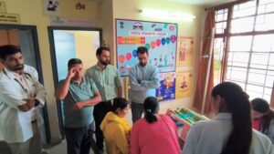 डॉ शुभम शर्मा मेडिकल ऑफिसर हॉस्पिटल धर्मशालामहंता अम्ब ने अपने कॉमुनिटी हेल्थ ऑफिसर और आशा वर्कर्स के साथ टीम का स्वागत किया।