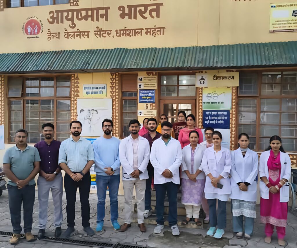 डॉ शुभम शर्मा मेडिकल ऑफिसर हॉस्पिटल धर्मशालामहंता अम्ब ने अपने कॉमुनिटी हेल्थ ऑफिसर और आशा वर्कर्स के साथ टीम का स्वागत किया।