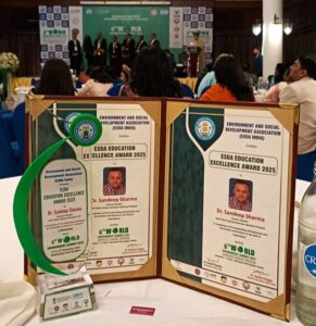हमीरपुर/विवेकानंद वशिष्ठ :- एनवायरनमेंट एंड सोशल डेवलपमेंट एसोसिएशन भारत द्वारा 6वीं वर्ल्ड एनवायरनमेंट समिट 2025 का आयोजन एम्बेसडर होटल बैंकाक थाईलैंड में 9 से 11 नवंबर किया गया जिसमे हमीरपुर के डॉ संदीप शर्मा को एडुकेशन एक्सीलेंस अवार्ड 2025 साइंस शिक्षक के साथ हिंदी साहित्य में अमूल्य योगदान के लिए दिया गया।
