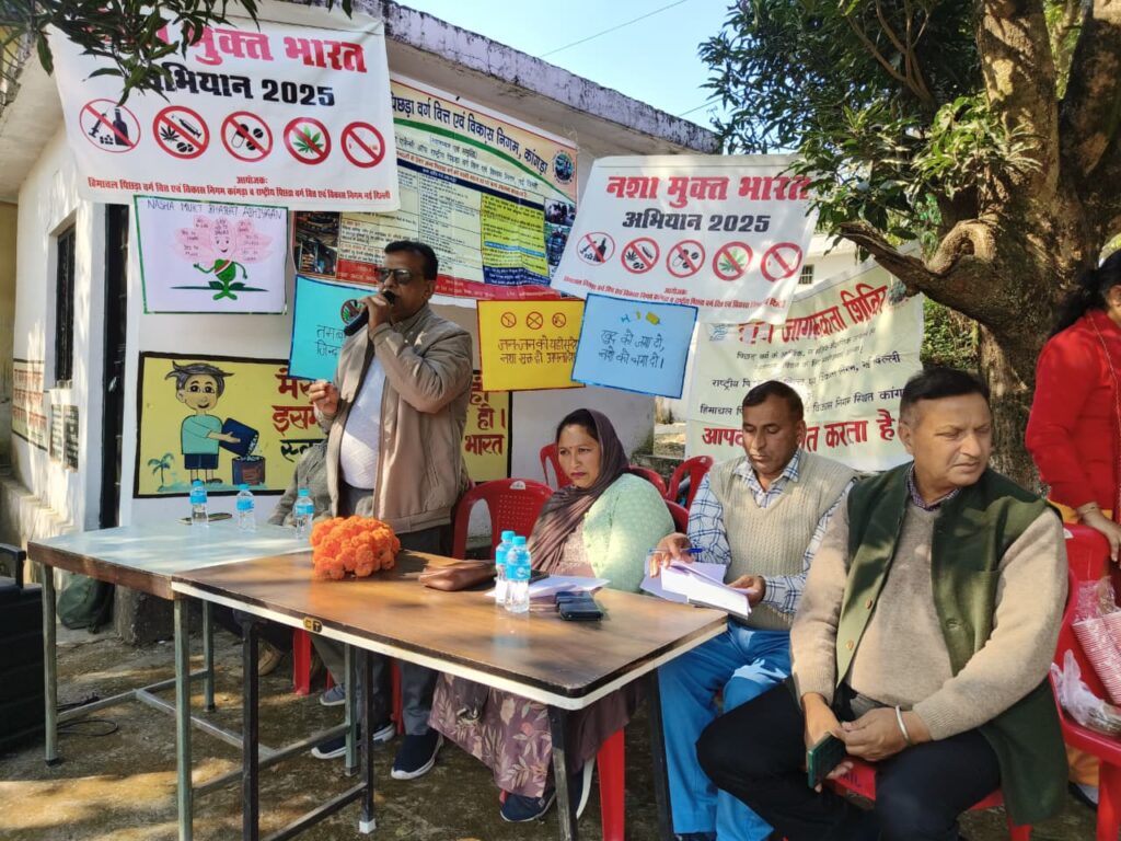 नादौन/हमीरपुर :- नशा मुक्त भारत अभियान की 5वीं वर्षगांठ के उपलक्ष्य पर हिमाचल प्रदेश पिछड़ा वर्ग वित एवं विकास निगम ने मंगलवार को ग्राम पंचायत रैल में एक जागरुकता कार्यक्रम आयोजित किया, जिसकी अध्यक्षता निगम के उपाध्यक्ष डॉ. मोहन लाल ने की।
