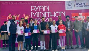 हमीरपुर/विवेकानंद वशिष्ठ :- पूर्व केंद्रीय मंत्री व हमीरपुर लोकसभा क्षेत्र से सांसद अनुराग सिंह ठाकुर ने आज चण्डीगढ़ स्थित रायन इंटरनेशनल स्कूल के 26 वें मिनिथॉन कार्यक्रम में बतौर मुख्यअतिथि शामिल हुए, और विद्यालय परिवार को अपनी शुभकामनाएं देते हुए छात्रों को भी संबोधित किया। यह इवेंट रायन ग्रुप ऑफ़ इंस्टीट्यूशंस का सालाना इवेंट है। इस इवेंट में ट्राइसिटी और पंजाब रीजन के 29 अलग-अलग स्कूलों के लगभग 2730 बच्चों ने हिस्सा लिया।