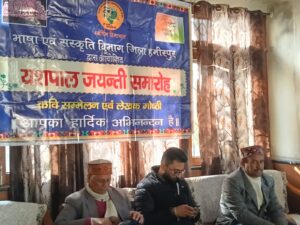 नादौन/हमीरपुर :- स्वतंत्रता सेनानी एवं साहित्यकार यशपाल की जयंती के उपलक्ष्य पर भाषा, कला एवं संस्कृति विभाग ने शनिवार को यहां यशपाल साहित्य प्रतिष्ठान में एक साहित्यिक समारोह आयोजित किया, जिसमें जिला हमीरपुर के विभिन्न क्षेत्रों के प्रतिष्ठित साहित्यकारों, कवियों, लेखकों तथा साहित्य प्रेमियों ने उत्साहपूर्वक भाग लिया।