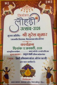 भोरंज/हमीरपुर:- उपमंडल मुख्यालय भोरंज में इस बार भी लोहड़ी उत्सव धूमधाम के साथ मनाया जाएगा। प्रशासन की ओर से इसकी तैयारियों को अंतिम रूप दिया जा रहा है।