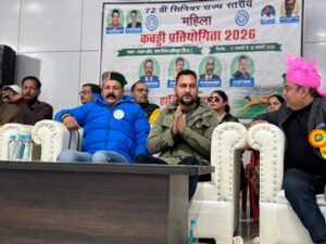 हमीरपुर/विवेकानंद वशिष्ठ:- टाउन हॉल हमीरपुर में एमेच्योर कबड्डी एसोसिएशन ऑफ हमीरपुर द्वारा आयोजित 72वीं सीनियर महिला राज्य कबड्डी चैंपियनशिप 2026 में विधायक आशीष शर्मा ने बतौर मुख्यातिथि शिरकत की।