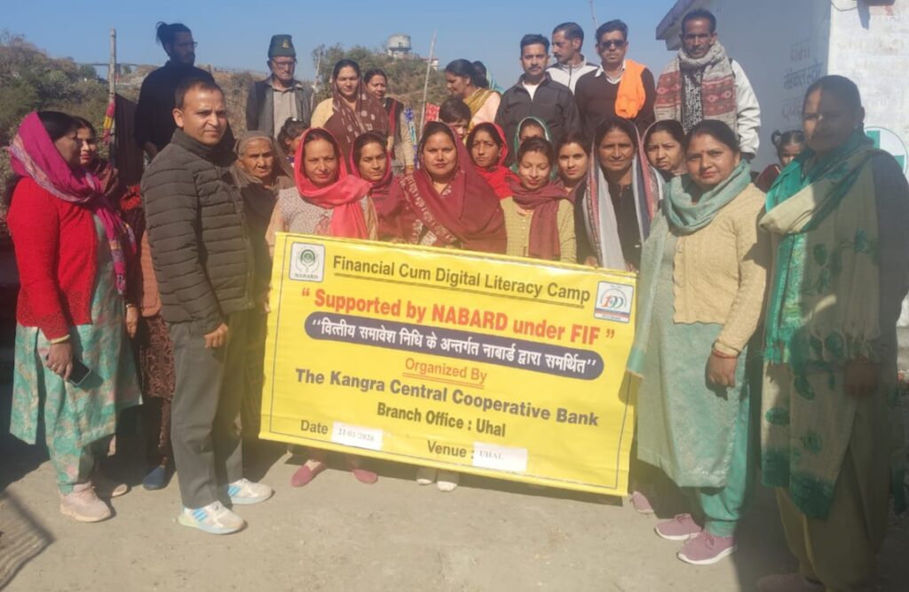 उहल/हमीरपुर:- कांगड़ा केंद्रीय सहकारी बैंक की उहल शाखा ने नाबार्ड के सहयोग से गांव उहल में बैंक वित्तीय साक्षरता एवं जागरुकता शिविर आयोजित किया। शिविर का मुख्य उद्देश्य ग्रामीणों को बैंकिंग सेवाओं और विभिन्न सरकारी योजनाओं की जानकारी देकर उन्हें आर्थिक रूप से सशक्त बनाना रहा।