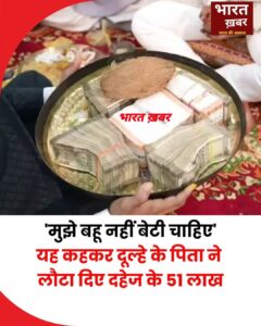 लेकिन इसी दौरान दूल्हे के पिता अनोज पाठक ने यह 51 लाख रुपए का दहेज लेने से इनकार कर दिया।