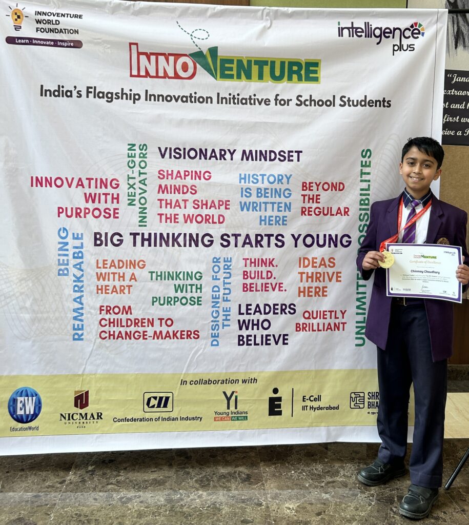 अपनी सफलता पर प्रतिक्रिया व्यक्त करते हुए चिन्मय ने अपने माता-पिता, मार्गदर्शकों तथा विद्यालय नेतृत्व के प्रति गहरी कृतज्ञता प्रकट की। उन्होंने विशेष रूप से अपनी मार्गदर्शक शिक्षिका मृदुला शर्मा का आभार व्यक्त किया, जिनके सतत मार्गदर्शन, प्रेरणा और शैक्षणिक सहयोग से उनका नवाचार विचार साकार रूप ले सका।
