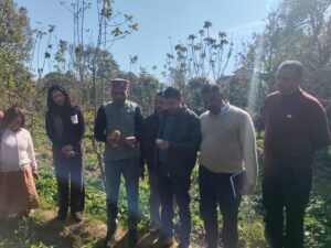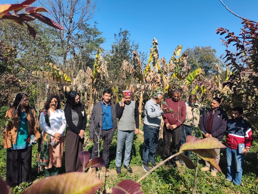 हमीरपुर/विवेकानंद वशिष्ठ:- कृषि उपज मंडी समिति (एपीएमसी) हमीरपुर के अध्यक्ष अजय शर्मा ने बुधवार को कृषि और उद्यान विभाग के उच्च अधिकारियों के साथ कुठेड़ा क्षेत्र का दौरा किया। उन्होंने क्षेत्र के प्रगतिशील किसान एवं शिक्षा विभाग से उपनिदेशक के पद से सेवानिवृत्त हुए देशराज शर्मा के बागीचे का जायजा लिया।
