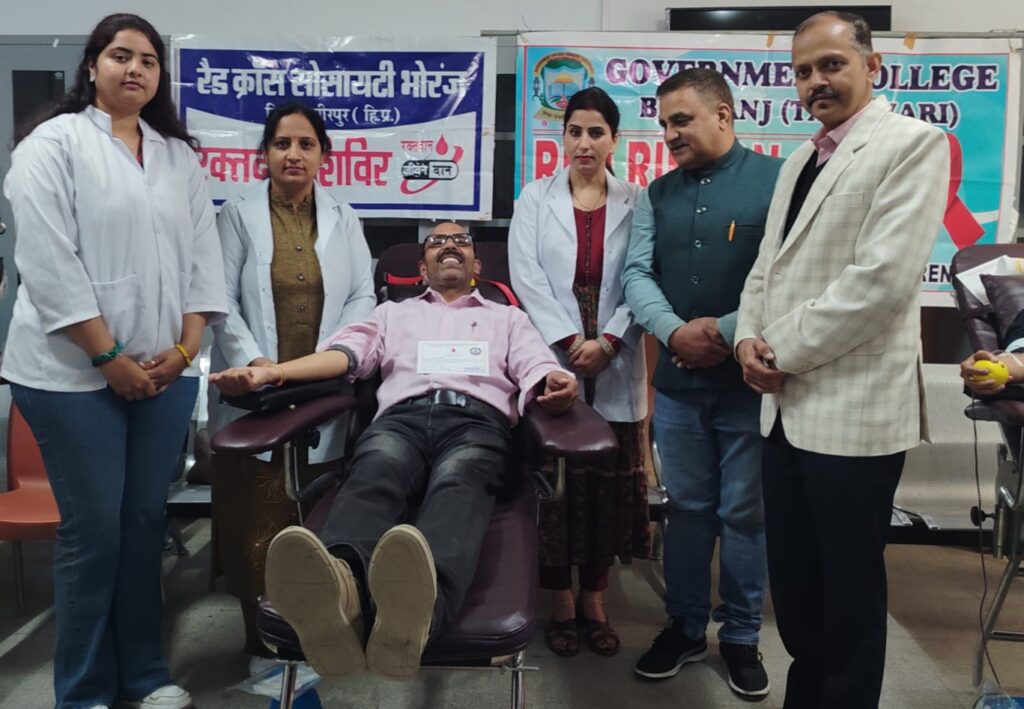 भोरंज/हमीरपुर:- रैडक्रॉस सोसाइटी की उपमंडलीय इकाई ने वीरवार को राजकीय डिग्री कालेज कंजयाण में रक्तदान शिविर आयोजित किया। कालेज के रैड रिबन क्लब और एनसीसी इकाई तथा स्वास्थ्य विभाग के सहयोग से आयोजित इस रक्तदान शिविर में कुल 48 यूनिट रक्त एकत्रित किया गया।