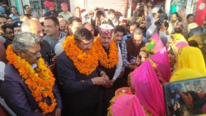 भव्य शोभायात्रा में लिया भाग, मुरली मनोहर मंदिर में की पूजा अर्चना, प्रदर्शनियों का भी किया उदघाटन
