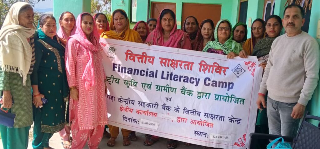 हमीरपुर/विवेकानंद वशिष्ठ:- कांगड़ा केंद्रीय सहकारी बैंक की शाखा काले अंब ने नाबार्ड के सहयोग से ग्राम पंचायत नाड़सी के गांव ककड़ियार में वित्तीय साक्षरता शिविर का आयोजन किया।