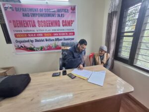 हमीरपुर:- नागरिकों में डिमेंशिया एवं अन्य मनोरोगों की जांच के लिए सामाजिक न्याय एवं अधिकारिता विभाग ने वीरवार को ग्राम पंचायत काले अंब में एक शिविर आयोजित किया।