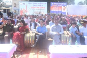 इससे पहले, सैनिक स्कूल की प्रधानाचार्य एवं वायु सेना की वरिष्ठ अधिकारी कैप्टन रचना जोशी ने विधायक कैप्टन रणजीत सिंह, डीसी गंधर्वा राठौड़, एसपी बलवीर सिंह, कटोच वंश के परिवार के सदस्यों और अन्य अतिथियों का स्वागत किया तथा एयर शो से संबंधित प्रबंधों की जानकारी दी।