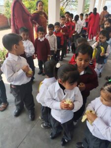 इसी सेवा भाव के तहत आज श्रेष्ठा कुमारी मेमोरियल ट्रस्ट, वलोह द्वारा गवर्नमेंट प्राइमरी स्कूल विरडी में बच्चों के बीच फल (केले) वितरित किए गए और तीन जरूरतमंद बच्चों को स्कूल के जूते प्रदान किए गए।