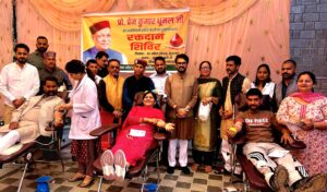 समीरपुर में प्रोफेसर धूमल के जन्मदिन पर भाजपा कार्यकर्ताओं ने किया रक्तदान