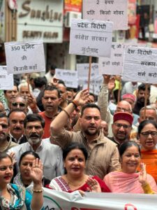 हमीरपुर/विवेकानंद वशिष्ठ :- प्रदेश की कांग्रेस सरकार की गलत नीतियों और जनविरोधी निर्णयों के खिलाफ हमीरपुर भाजपा ने शनिवार को हमीरपुर गांधी चौक में प्रदर्शन किया। इसमें सदर के विधायक आशीष शर्मा विशेष रूप से मौजूद रहे। गांधी चौक पर हुए विरोध प्रदर्शन में कार्यकर्ताओं ने प्रदेश सरकार पर जमकर नारेबाजी की