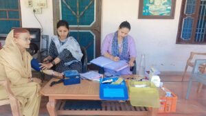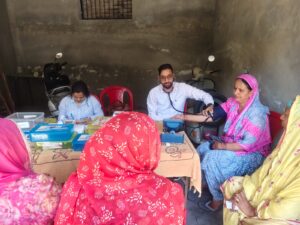 स्वास्थ्य जांच टीमों के डॉक्टरों (डॉ पंकज, डॉ अंजू, डॉ शिवानी) ने मरीजों के स्वास्थ्य की जांच व रक्तजांच कर निशुल्क दवाईयों का वितरण किया ।