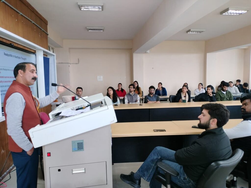 शिमला/विवेकानंद वशिष्ठ :- हिमाचल प्रदेश विश्वविद्यालय (एचपीयू) के ‘स्टूडेंट्स फॉर होलिस्टिक डेवलपमेंट ऑफ ह्यूमैनिटी’ (शोध) फाउंडेशन द्वारा एमबीए विभाग के सम्मेलन कक्ष में “भारतीय शासन कला में राजनीतिक और रणनीतिक विचारों को समझना: चाणक्य से मोदी तक” विषय पर एक विशेष व्याख्यान का आयोजन किया गया।