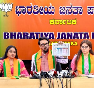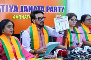 बेंगलुरु/विवेकानंद वशिष्ठ:- बेंगलुरु में आयोजित एक प्रेस वार्ता को संबोधित करते हुए पूर्व केंद्रीय मंत्री अनुराग सिंह ठाकुर ने कांग्रेस, टीएमसी, डीएमके और समाजवादी पार्टी पर 17 अप्रैल 2026 को नारी शक्ति वंदन अधिनियम से संबंधित संविधान संशोधन विधेयक को पारित होने से रोकने का गंभीर आरोप लगाया।