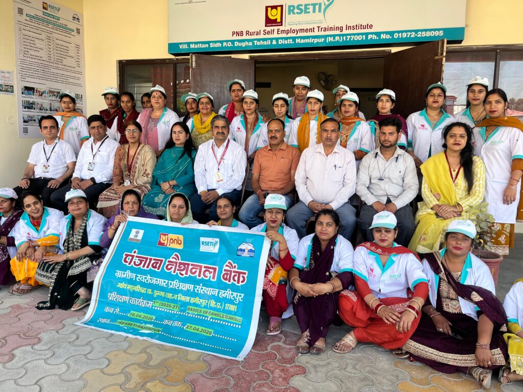 हमीरपुर/विवेकानंद वशिष्ठ:- पंजाब नेशनल बैंक ग्रामीण स्वरोजगार प्रशिक्षण संस्थान (आरसेटी) द्वारा महिलाओं के लिए आयोजित 12 दिवसीय प्रशिक्षण शिविर सोमवार को संपन्न हो गया। इस शिविर में 29 महिलाओं ने मोमबत्ती बनाने का प्रशिक्षण प्राप्त किया।